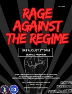 We’re teaming up with Power to the People and 50501 on Saturday, August 2 at 5 PM for “Rage Against the Regime”—a mass, nonviolent, community‑led mobilization to turn our outrage over ICE weaponization, concentration camps, the Epstein cover‑up, attacks on trans rights, and the gutting of Medicaid, SNAP, USAID, DOE, NOAA & NWS into collective action. All 50501 actions are inclusive, nonviolent & community‑led.
