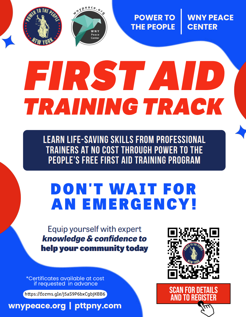 WNYcosh, the WNY Peace Center, and PTTPNY are holding medical trainings to prepare people to address common medical situations and provide care. All medical trainings are in the Tri-Main Center Lower Lobby, 2495 Main St, Buffalo, NY 14214. Our offerings include: First Aid Training - Learn how to recognize symptoms, provide the appropriate initial care, […] |
